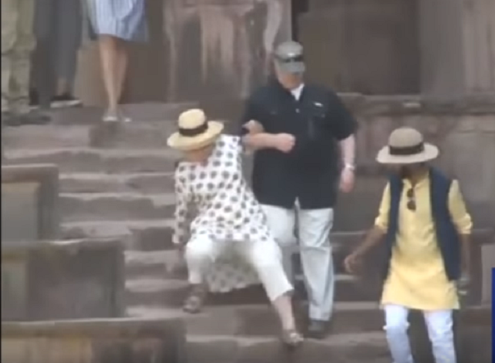 Как мы писали ранее, на этой неделе в Индии Хиллари Клинтон дважды поскользнулась на лестнице. Упасть и сломать шею ей не дали двое мужчин, подхвативших её под руки. Третий же мужчина, шедший рядом, подобрал тапок слетевший с ноги престарелого политика. "Похоже, жидкость для анимации тела заканчивается.. Время перемен, прежде чем люди поймут, что она мертва уже 10 лет,"- такого рода комментарии писали тогда иностранные пользователи к видео,-"Хаха! Путин взломал ее моторные функции.Потрясно" Как выясняется, это было бы, по крайней мере, второе падение Клинтон за границей. Как пишет The Newsweek, Хиллари также навернулась в ванной отеля Umaid Bhawan Palace, где она останавливалась. Заняв шикарную резиденцию бывшей королевской семьи Джодхпура, принимая водные процедуры, Хиллари поскользнулась в ванной, вследствие чего у неё обнаружен перелом запястья. По итогу, учитывая падение на лестнице, Хиллари заплатила за поездку по Индии переломом запястья и трещиной на лодыжке, став калекой на