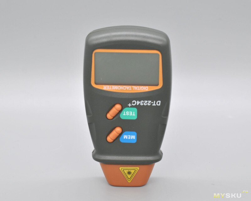 Добрый день, уважаемые читатели. Сегодня микро-обзор простого тахометра, прибора для измерения частоты вращения. Прибор не для повседневного использования, но иногда может сильно выручить. Прибор этот мало кому нужен каждый день, однако, обозревался тут не один десяток раз. Я заказывал его на работу, для настройки ретортной печи. Потом положу его на дальнюю полку шкафа рядом с люксметром, авось когда еще пригодится. Поставляется прибор в простецкой коробке: Характеристики: Материал корпуса: пластик Дисплей: 5 цифр Пределы измерений: от 2.5 до 99999 об\мин Разрешение: 0.1 об\мин (от 2.5 до 999.9 об\мин) и 1 об\мин (выше 1,000 об\мин) Время измерения: 0,8 с Точность: 0.05%+1 знак Расстояние измерения: от 50 до 500 мм Память: последнее, максимальное и минимальное значения. Питание: 9V 6F22 Крона Размеры: 130 * 70 * 29 мм Масса: 79 г. Комплектация скудна: Нет чехла и батарейки. Полоски светоотражающих наклеек: 20 см длиной Внешний вид: Прибор оснащен экраном на 5 знаков (18 мм высотой) бе