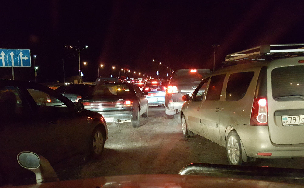 Форменный транспортный коллапс произошел в Усть-Каменогорске 6 февраля, 19.30. Транспортное кольцо около Байтерека. Пробка. Растянулась до Меновновского перекрестка. Проспект Победы перекрыт от Императора до пересечения с улицей Кайсенова. Те, кто успел проскочить, не могут выехать на кольцо. Мои знакомые ждали «своей очереди» тридцать минут. Тем, кого полицейские отправили в объезд по набережной, еще хуже. Машины стоят в пробке начиная с мемориала афганцам. И это уже не час пик. И так чуть ли не каждый день...