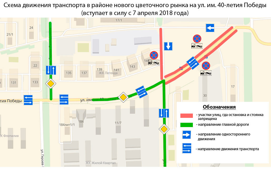 В кубанской столице приняли решение изменить схему движения возле нового цветочного рынка на улице 40-летия Победы.