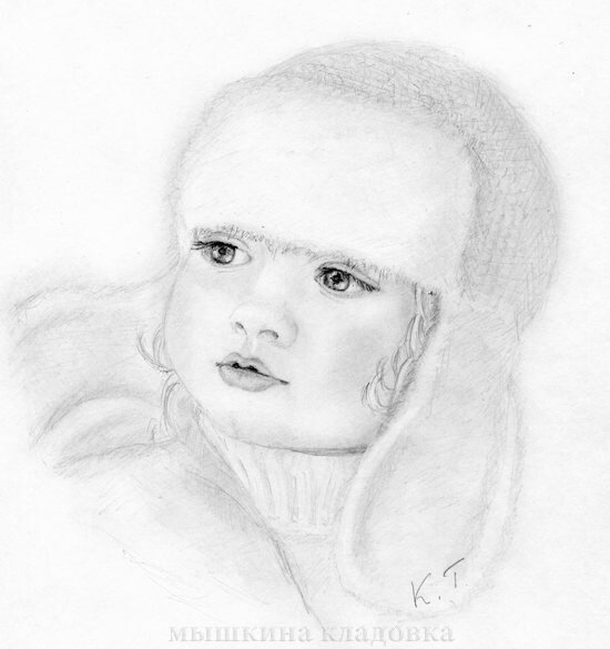 Рисунок — Малыш в шапочке Почему-то, когда увидела фотографию с этим малышом, решила, что это именно мальчик. Так же подумал и мой муж, хотя, потом засомневался из-за кудряшек.