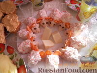 Продукты (на 12 порций)Плавленые сырки - 3 шт.Крабовые палочки - 300-400 гМайонез - 100-150 гЧеснок (для любителя) Как приготовить закуску "Строптивые Мышата": 1. Берётся сыр плавленый, трётся на тёрке. Добавляются замороженные тёртые крабовые палочки, майонез, чеснок. Масса ставится в холодильник на 1 час. 2. Формируются мышки, обваливаются в крабовых тёртых палочках, укладываются на блюдо. 3. Глаза - перец горошком, уши - морковка, хвост - крабовые палочки. Для украшения можно положить в серединку кусочки сыра. Закуску "Строптивые Мышата" охладить и подавать на стол.