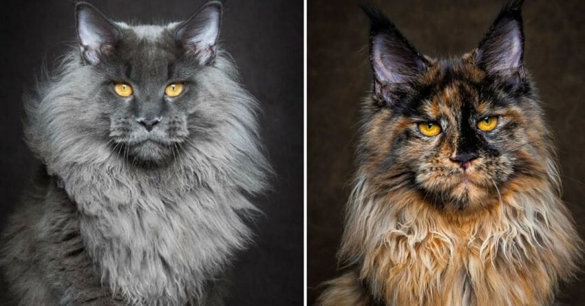 Мейн-кун – это самая крупная одомашненная порода кошек. Их часто называют мини-львами, ведь их размеры значительно отличаются от обычных кошек. Фотограф Роберт Сайка так вдохновился этой породой, что сделал целую серию снимков котов мейн-кунов, показывая их величество.