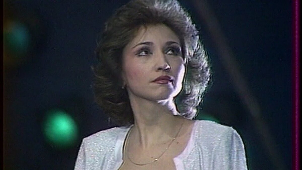 И, конечно, мода не стоит на месте. Образы явно становятся смелее и свободнее. Популярнее становятся начёсы и длинные волосы у мужиков, хотя это ещё не пик, конечно, пик впереди. Чуть-по-чуть моднеют огромные плечи и мужские силуэты. Ну и, конечно, всё должно блестеть! В 1985 году впервые появляется Ирина Аллегрова, чтобы больше с этой сцены не слезать. Но сейчас она очень мало похожа на шальную императрицу. Голос ещё высокий и чистый, хрипотцой не подёрнутый, волосы натурального каштанового оттенка и скромное белое платье, закрытое и многослойное. Песня не о проститутках, не о том, как императрица, жившая в Петербурге, несется на окраину Москвы, а уныловатая жвачка про голос ребёнка. Нет,
