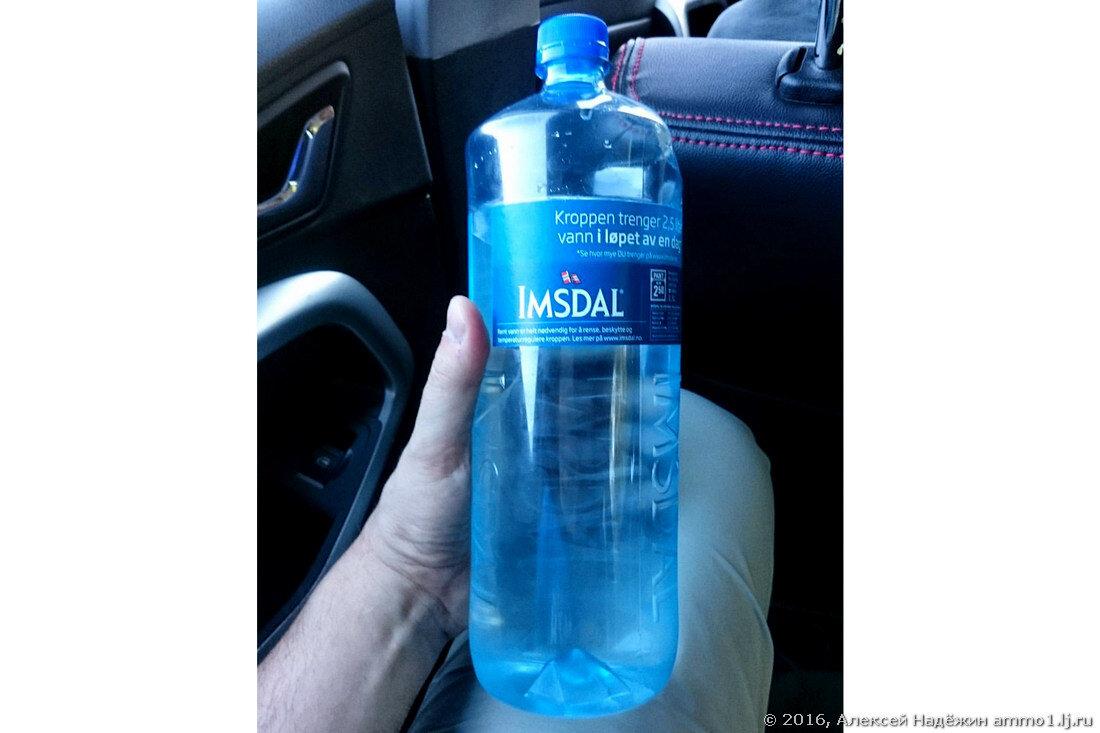 Вот эту бутылку воды я вынужден был купить на заправке за 37 крон.