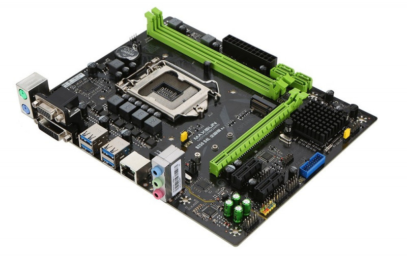 Если честно, выбор был не очень большой, в итоге взял недорогую m-ATX плату MS-B250D4L от Maxsun.