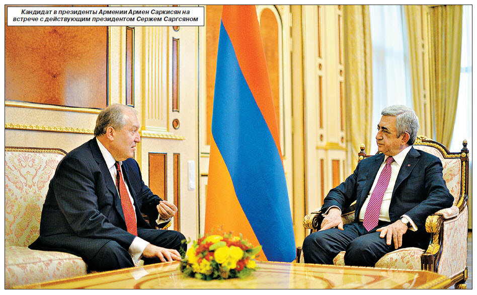 Самым неожиданным и удачным кадровым выдвижением Сержа Саргсяна в последние месяцы его правления стало предложение на пост четвертого президента Армении кандидатуры беспартийного, бывшего премьер-министра, Чрезвычайного и Полномочного Посла РА в Великобритании Армена Саркисяна. На данный пост армянские эксперты небезосновательно называли разные имена (например, председателя Конституционного суда Гагика Арутюняна и министра иностранных дел Эдварда Налбандяна). Однако Серж Саргсян своим выбором показал, что он достаточно ответственно подходит к инициированной им же политической реформе и пост президента должен занять не просто политически компромиссный и непроблемный кандидат, а человек с большим содержанием, широкими связями и возможностями, политически грамотный и имеющий политический авторитет как внутри, так и вовне Армении.