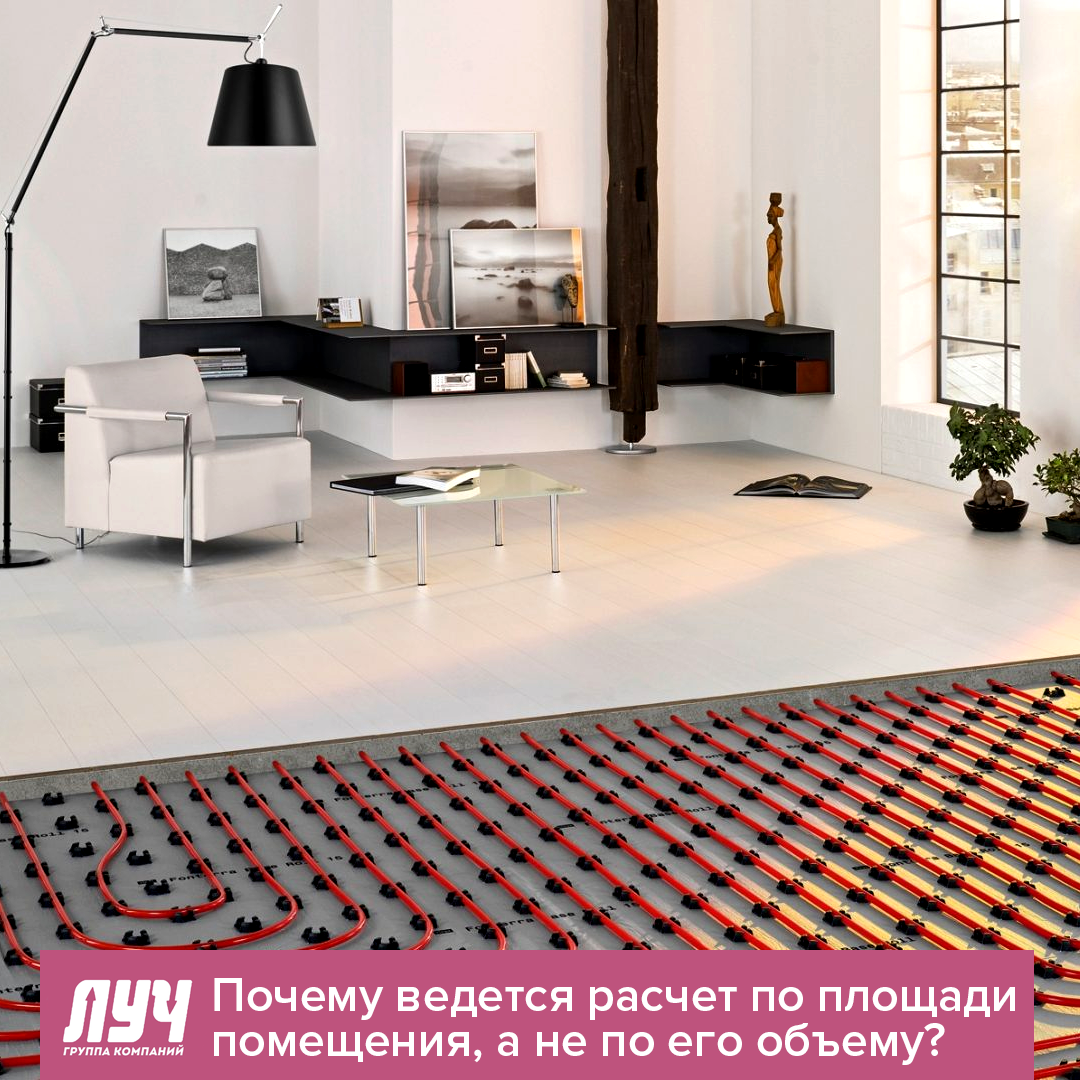 Вопрос: Почему ведется расчет по площади помещения, а не по его объему? Дело в том, что воздух не служит теплоносителем в прогревании помещения. Он нагревается благодаря теплоотдаче от поверхности предметов. Это связано с принципом работы ИК-отопления, когда прогревается в первую очередь стены, пол и предметы интерьера. . . . Узнайте больше о системах отопления на сайте ГК «ЛУЧ» по ЭТОЙ ссылке.