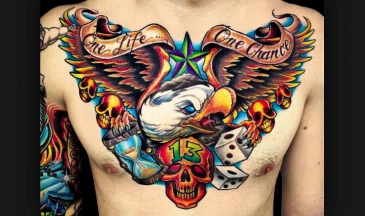 Татуировки в стиле нью скул – яркость красок и разнообразие сюжетов. Яркие, необычные тату в стиле нью скул являются своеобразным ответом татуировкам в стиле старой школы – слишком видимая мультипликация придает таким изображениям особый шарм и привлекательность. Интересно, что направление нью скул относительно молодое. Оно зародилось лишь около тридцати лет тому назад, однако за столь короткий срок стиль полюбили сотни тысяч людей во многих уголках мира. Отцом направления является известный дизайнер Э. Харди. Сначала он даже и сам толком не понял, что стал прародителем нового полноценного направления искусства и лишь в 2004 году, спустя примерно 20 лет после создания стиля, зарегистрировал соответствующую торговую марку, специализирующуюся на производстве футболок и различных предметов, оформленных в стиле New School Ed Hardy. Яркие сюжеты и узнаваемый дизайн тату в стиле нью скул Пожалуй, основной особенностью данного направления следует считать полное отсутствие каких-либо рамок.