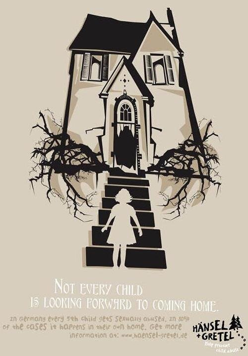 Социальная реклама, дискредитирующая кровную семью, первоначально возникла и распространяется на Западе, в частности, в Европе. Под видом защиты прав детей в ней деконструируют визуальные и смысловые образы дома, семьи и родителей. "Не каждый ребенок стремится вернуться домой В Германии каждого пятого ребенка сексуально оскорбляют. В 80% случаев это происходит у них дома. Получите подробную информацию на www.haensel-gretel.de. Помогите предотвратить насилие над детьми". Российская социальная реклама при поддержке международных фондов не отстаёт от западных образцов, и даже кое в чём превосходит их. Слоганы российских «креативщиков» «Мама-Кака», «Я боюсь тебя, мама...» и «Осторожно, злые родители!» — воистину примечательны. Многие из таких плакатов были разработаны специально для конкурса «Воспитание детей без обид и унижений», проведённого «Фондом поддержки детей, находящихся в трудной жизненной ситуации». Одна из целей плаката — «актуализировать тему насилия над детьми». Можно возра