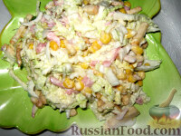 Здоровое питание обеспечивает нормальное развитие и жизнедеятельность человека, способствует укреплению его здоровья и профилактике заболеваний. Здоровое питание − залог долгой жизни. Для хорошего самочувствия, правильного функционирования органов нам необходимо питаться качественной пищей. Салат "Моя прекрасная леди" Нежный, легкий, вкусный - салат "Моя прекрасная леди" обладает всеми достоинствами! Этот рецепт - салат "Леди" - был позаимствован мною у свекрови, за что я ей очень благодарна. С тех пор салат "Моя прекрасная леди" не раз выручал меня, когда внезапно приходили гости. Отличный получается салат новогодний! Рекомендую всем, кто ищет салаты на новый год , Рождество и другие праздники. Продукты : капуста - 1 кочан , ветчина - 150-200 г кукуруза консервированная - 1 баночка майонез - 150 - 200 г сухарики - 2 пачки (150 г) соль - по вкусу