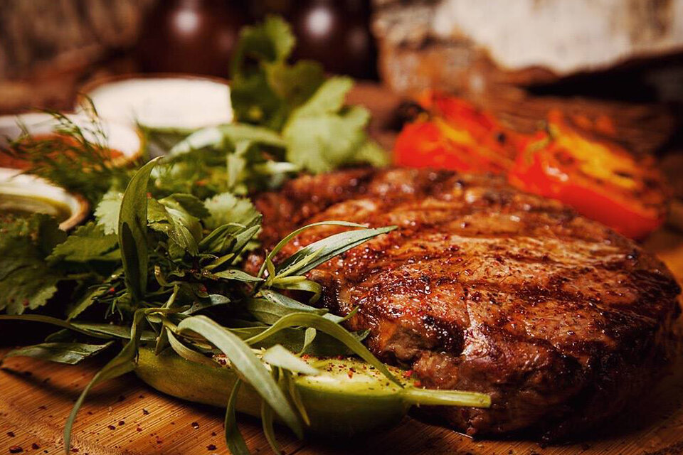 Главная особенность этого стейка в приправе: нежные куски говядины посыпаются душистыми кабардинскими специями, подаются с букетом из эстрагона, кинзы и укропа и четырьмя видами соусов — острым сацибели и сацибели с кусочками узбекских томатов и зеленью, аджикой и соусом сохта. Гостям, заказавшим рибай, а также стриплойн, в качестве комплимента ресторан дарит бокал французского красного сухого вина урожая 2010 года.
