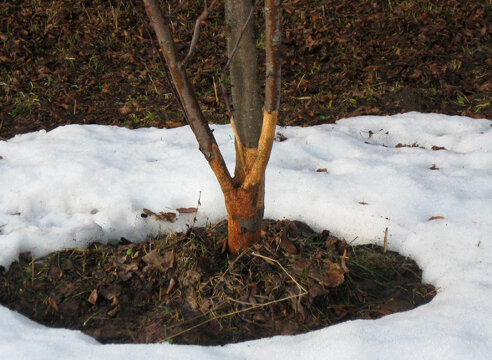 Ранней весной, когда еще лежит снег, нужно провести осмотр деревьев. В зимнее время грызуны наносят повреждения плодовым деревьям, особенно часто в саду мыши грызут кору яблонь. Расскажу, что делать, если яблоню погрызли грызуны. Как правильно посадить деревья на даче Лечить пострадавшие от грызунов деревья необходимо при морозе, когда дереву еще ничего не грозит. Поскольку с наступлением теплой погоды яблоня начнет терять влагу через прогрызы, в результате камбий засохнет и не восстановится. Камбий - это тончайший сочный слой между корой и древесиной, который нарастает при сохранении влажности. Поэтому необходимо вовремя позаботится о дереве. Для этого есть несколько способов. Дезинфекция теплицы весной – чем обрабатывать?