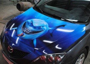 Каждому автолюбителю хочется, чтобы его машина выделялась из серой массы автомобилей. Аэрография пленкой на авто — это метод придать транспортному средству неповторимый и оригинальный вид, при этом покрытию автомобиля вред не причиняется. Пленки для аэрографии бывают разные:карбоновые, обычные и виниловые. Самые качественные — пленки карбоновые, конечно они и дороже, но из нее можно сделать любой узор и наклеить его на бампер и капот. Процесс работы: 1. Нарисуйте эскиз рисунка, который хотите наносить. Конечно, поклейку пленки лучше доверить специалистам, ведь одно ваше неловкое движение — и все будет испорчено. Но если есть уверенность в своих силах, приступайте к аэрографии своими руками. первым делом нужно сделать эскиз наносимого рисунка. Это не так уж и просто, нужно учитыватьмарку машины, ее цвет и технические характеристики. С учетом этих данный разработайте эскиз рисунка. Очень важно продумать, какую площадь поверхности машины он займет и с какой стороны вы его расположите. 2.