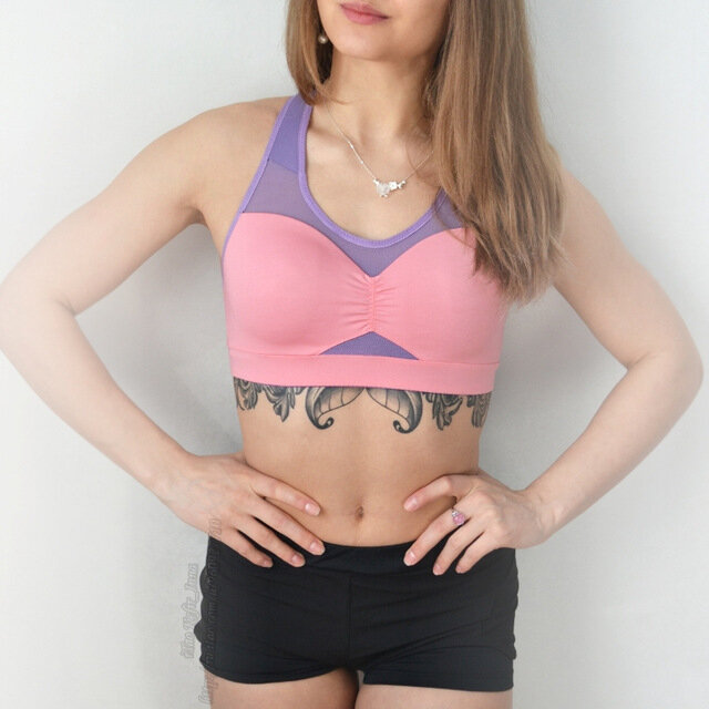 Ну что.. кажется пора заняться собой и вновь привести свое тело в порядок!) На улице много снега, но солнце уже светит по-весеннему, а это означает, что лето не за горами!!!) В таком топике будет приятно тренироваться, потому что конфетные цвета всегда дарят какой-то позитив и положительный настрой))) Дабы не прогадать с размером, взяла М-ку. У меня грудь 84 см, под грудью 72,5 см (ношу лифы 75А). Топ отлично подошел. Чашечки с выемками под сиси ^-^ Второй размерчик должен тоже уютненько уместиться, так что на 75B можете смело брать такой же размер. Сами чашки держат свою форму, но они мягкие, как в поролоновых бюстгальтерах. Из минусов: этот поролон в дороге немного помялся и появились заломы, думаю, после стирки их будет меньше, просто нужно будет аккуратненько сушить. На спинке есть красивая "загогулина" с отверстием.. Такой себе прикольный декор =D Спинка выполнена из сеточки, но не полностью. В общем, на фото все видно ;) На бирке указано, что размер М подойдет на 75А-80В. Топ