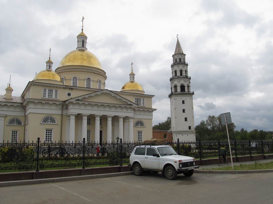 Осмотрев снаружи Невьянский православно-музейный комплекс садимся в машину под колокольный звон.