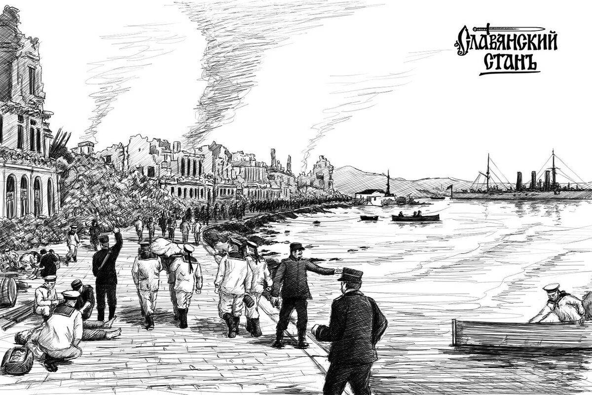 Когда русские корабли зашли в бухту, им открылась страшная картина. Полностью разрушенный город, по которому бродят грязные, обезумевшие от горя жители, стон раненых, пожары и руины некогда красивых зданий. Как только команда сошла на берег, русским морякам открылись новые масштабы трагедии. Немедленно был создан штаб по организации спасательной операции, город разделили на сектора, назначили ответственных и распределили каждой спасательной команде свой участок. Наряду с этим были развернуты пункты приема раненых, а также полевые кухни для раздачи горячей пищи пострадавшим. Несколько позже прибыли британские моряки, однако их действия в спасательной операции ограничились тем, что они оцепили квартал, где располагалось британское консульство, и занялись разбором завалов своей дипломатической миссии.