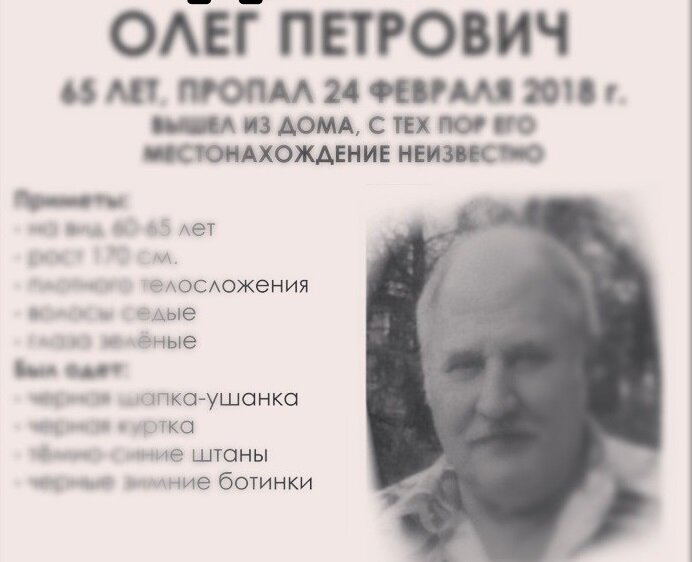 Две недели полицейские, родственники и волонтёры разыскивали 65-летнего Олега Петровича, пропавшего в Свердловском районе Перми. Напомним, в субботу 24 февраля пожилой мужчина вышел на прогулку из дома на ул. Клары Цеткин и пропал. Ни телефона, ни каких-либо документов мужчина с собой не взял.
