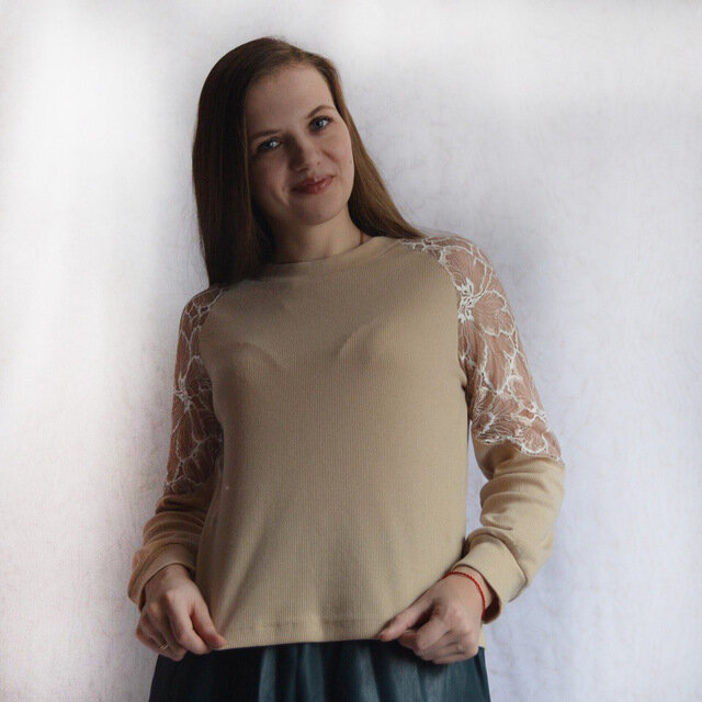 Кружавчики Очень нежная кофточка, завоевавшая уже мою любовь. Мне кажется, к весне самое то. Это облегченные, красивые рукавчики, украшенные кружевом и нежный цвет будет отлично смотреть как с простым низом, так и с достаточно ярким. Тут главное, не переборщить. У нас, кстати, зима снова решила повластвовать и сегодня уже минус 15, совсем не тепло.. Но это ж ненадолго, правда, готовимся к весеннему сезону. Основной материал не толстый, то есть вариант как раз уже на более теплый период. Как заявляет продавец, это чисто синтетика, но по моим ощущениям натуральное там есть. Очень нежная к телу, рукавчики тоже не колятся. Белье, как видите, выделяется визуально, нужно что-то более спокойное поддевать. При этом не просвечивает ткань, не электризуется. Пошив вполне себе, есть там загульный шов и торчащие ниточки, не криминал. Сам крой джемпера прямой, носить его лучше под заправка, как-то более опрятно смотрится. Рукав достаточно длинный, у меня даже чууточку есть еще запас. На рост 168см д