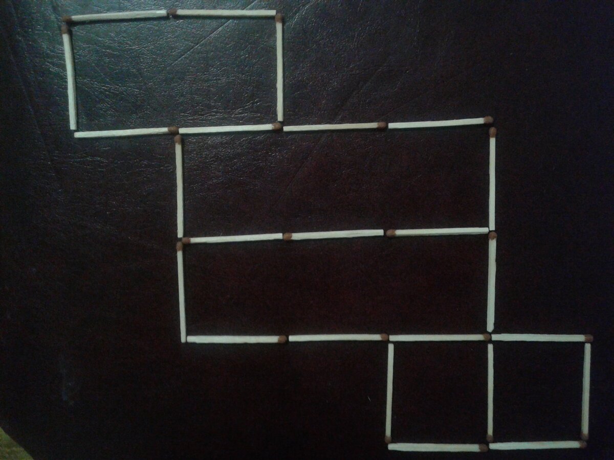 Из спичек выложено 3 прямоугольника и 2 квадрата. Какие 3 спички нужно переложить, чтобы получилось 6 квадратов? Попробуйте найти ответ самостоятельно! Ответ сморите ниже. Справились? Ставьте лайк, если у вас получилось?! Подписывайтесь, если хотите больше таких задач! Напишите автору: eugene.iq@yandex.ru