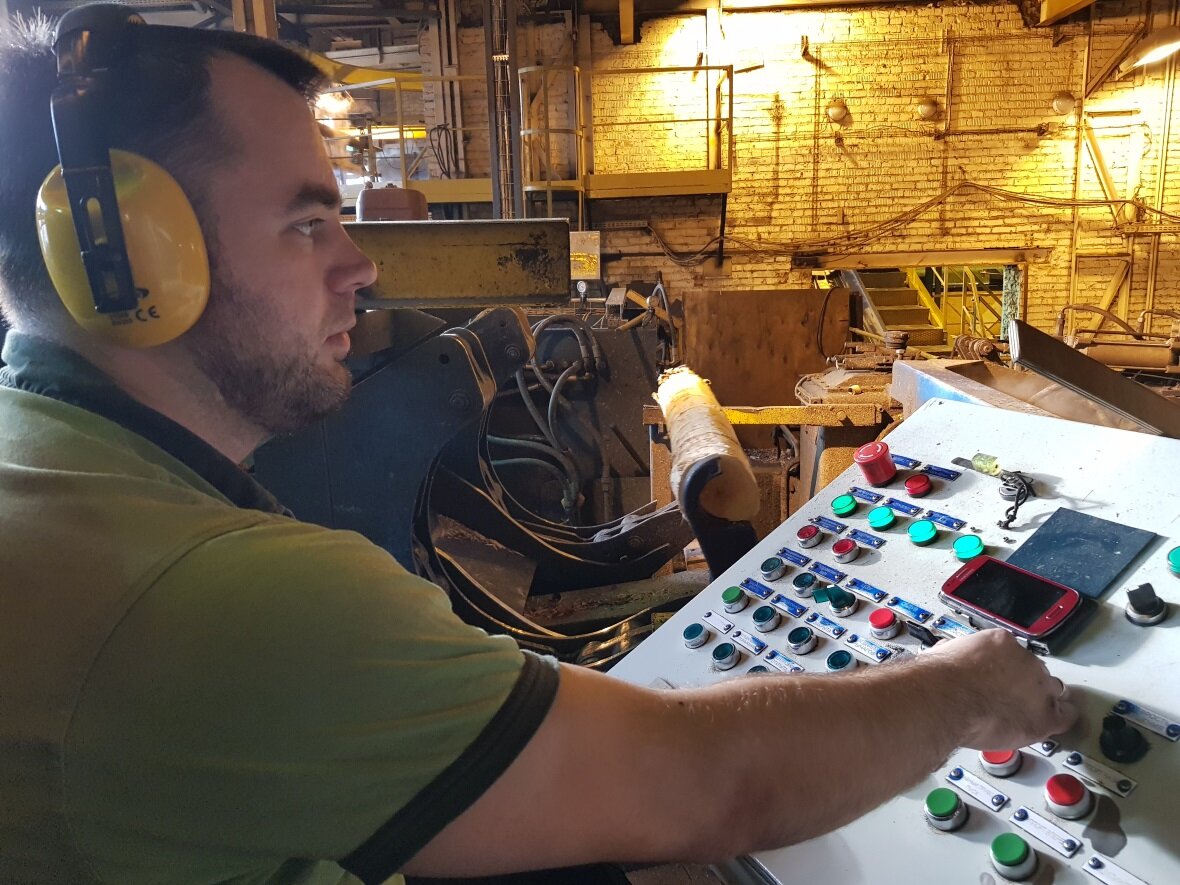 И, действительно, процесс превращения толстого обрезка бревна — деревянного «чурака» — в тончайшую, почти как бумага, полосу шпона, стоит того, чтобы его увидеть. И на самом деле завораживает виртуозная работа «лущильщика», который держит свой станок буквально «на кончиках пальцев», играя на многочисленных кнопках, как на клавиатуре — подбрасывая и переворачивая каждый чурак так, чтобы он идеально вошёл в роспуск...