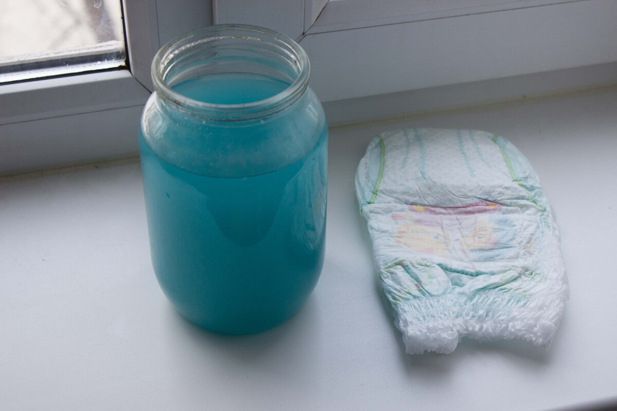 Помню в детстве по "ОРТ" (1 канал), постоянно крутили рекламу, как в памперс наливают водичку, а затем разрезая показывают, во что же она превратилась! И я решил провести схожий небольшой эксперимент. На днях, перед сном пытаясь натянуть на Темку подгузник "Pampers Pants", я совершенно случайно его порвал. Этого бы не случилось, если бы ребенок не сопротивлялся и спокойно сидел на моих коленках. Но, что случилось, то случилось. Увидев мой "косяк", жена закатив глаза тут же начала причитать, мол, их и так осталось мало, а ты их еще и рвешь. Темка улыбаясь показывал пальчиком на место разрыва, а я думал, что этот испорченный подгузник пойдет на мой эксперимент. Интересно ведь, сколько жидкости в него вместится! На следующий день, отправив своих на прогулку я приготовился к опытам :) Заранее зарядив аккумулятор в фотокамере и подготовив необходимое, я приступил. Вообще, я не думал, что один новый подгузник сможет вместить в себя больше литра воды. Поэтому подготовил литровую банку с водой