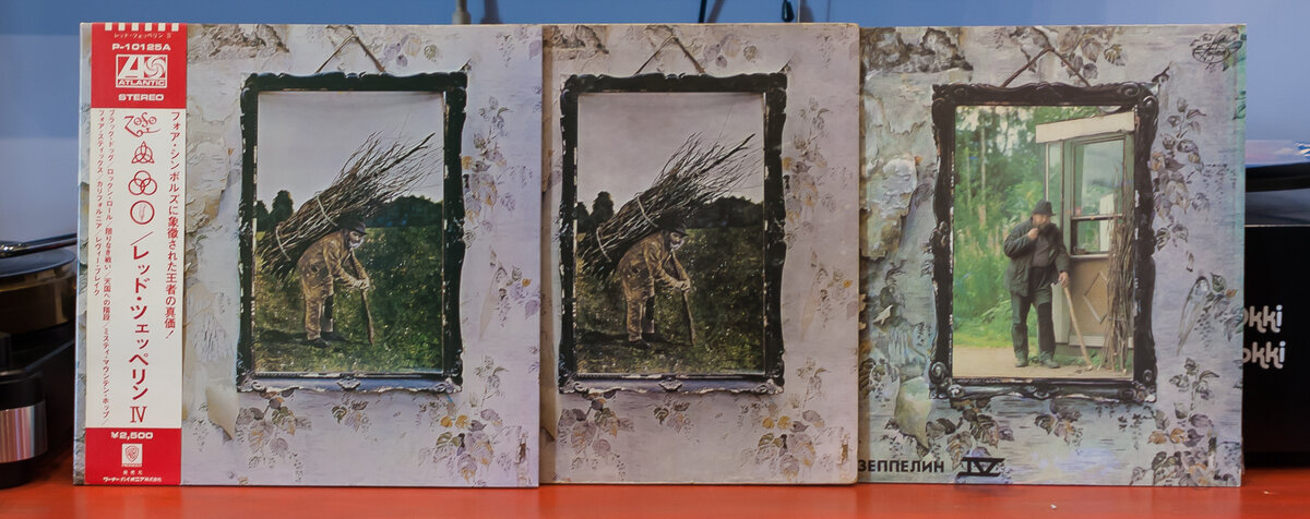 Вышло так, что у меня нашлось 3 разных пресса четвертого альбома LZ – второй английский в очень хорошем со стоянии, третий (или второй?) японский и «босяцкий бриллиант» в этой троице – нулевый АнТроповский пресс 1991 года. Давайте же скорее узнаем – кто здесь по-настоящему крут?