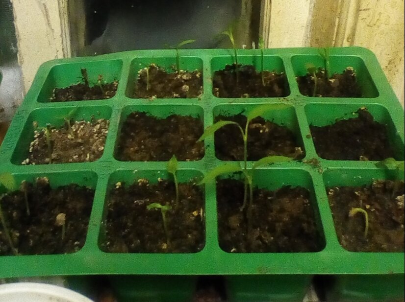 На сегодняшний день у меня посажены перцы, баклажаны, помидоры и немного цветов и капусты. Что мы имеем спустя некоторое время: Перцы и баклажаны от 12 февраля Спустя ровно месяц могу констатировать, что таблетки в Фикс-Прайсе и правда были отвратительные. Из кучи перцев, посаженных в них, взошёл только один. Зато в стаканчиках и простом покупном грунте перчики отлично растут. А с баклажанами ситуация гораздо хуже. Очень многие не взошли, а достаточно большое количество вылезли "космонавтами", да такими, что листьев не видно, и снять семенную оболочку никак не получилось. Думаю, что земля оказалась тяжёлой - смешивала покупную со своей. Итог печален, надо срочно досаживать. Помидоры от 19 февраля Все помидорки, посаженные в этот день успешно взошли, количеством более 50% каждого сорта и успешно растут. Вытягиваются, но это не страшно, при пикировке углубим. Некоторые, правда, придётся пересаживать лёжа. Помидоры от 6 марта Раннеспелые сорта показали петельки, фотографировала вчера посл