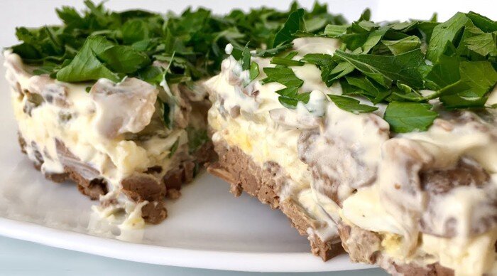 Слоеный салат «Чудо». Рецепт для любителей куриной печени
