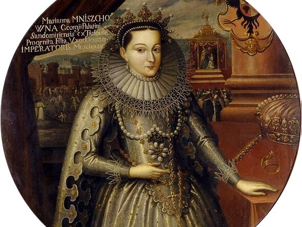 Жизнь Марины Мнишек, этой удивительной женщины, истинной дочери авантюрного семнадцатого столетия, подобна приключенческому роману, в котором есть и любовь, и сражения, и погони. Нет только счастливого конца. Марина была дочерью сандомирского воеводы Ежи Мнишека. Она родилась в 1588 году в родовом замке своего отца. Ее происхождение, красота и богатство сулили ей жизнь польской панны, полную довольства и развлечений, в которой был бы и блестящий выезд в свет, и веселые пиры и охоты, и хозяйственные заботы по управлению имением мужа, и, наконец, нашлось бы место и романам, куда ж без них польской красавице в семнадцатом веке! Однако, судьба распорядилась иначе. В 1604 году в имении Ежи Мнишека объявился некто, именовавший себя счастливо спасшимся царевичем Дмитрием, сыном русского царя Иоанна. Вряд ли Марина сильно интересовалась делами соседней России, это были заботы вельможных панов на сейме, да и собой новоявленный «царевич» был не особенно хорош. Однако пришелец влюбился в Марину,