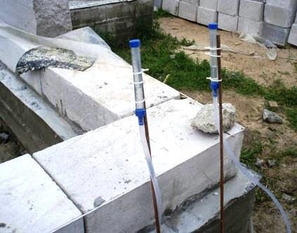 – Установленная разноска оставляется до окончания всех фундаментных работ. Благодаря отступу от фундамента, нити можно снимать и натягивать по мере необходимости.