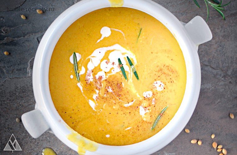 - Суп-пюре готов, заправляем его сливочным маслом и подаем к столу.
