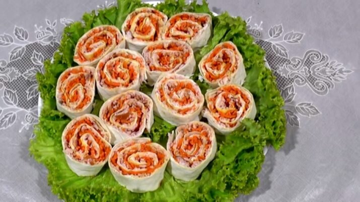 Вкуснейшая закуска в лаваше: с ветчиной и корейской морковью