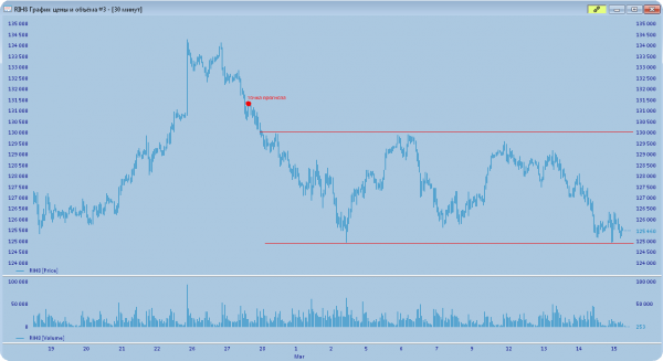 Последние недели торгов мартовского фьючерса так и прошли - в диапазоне 125.000-130.000: