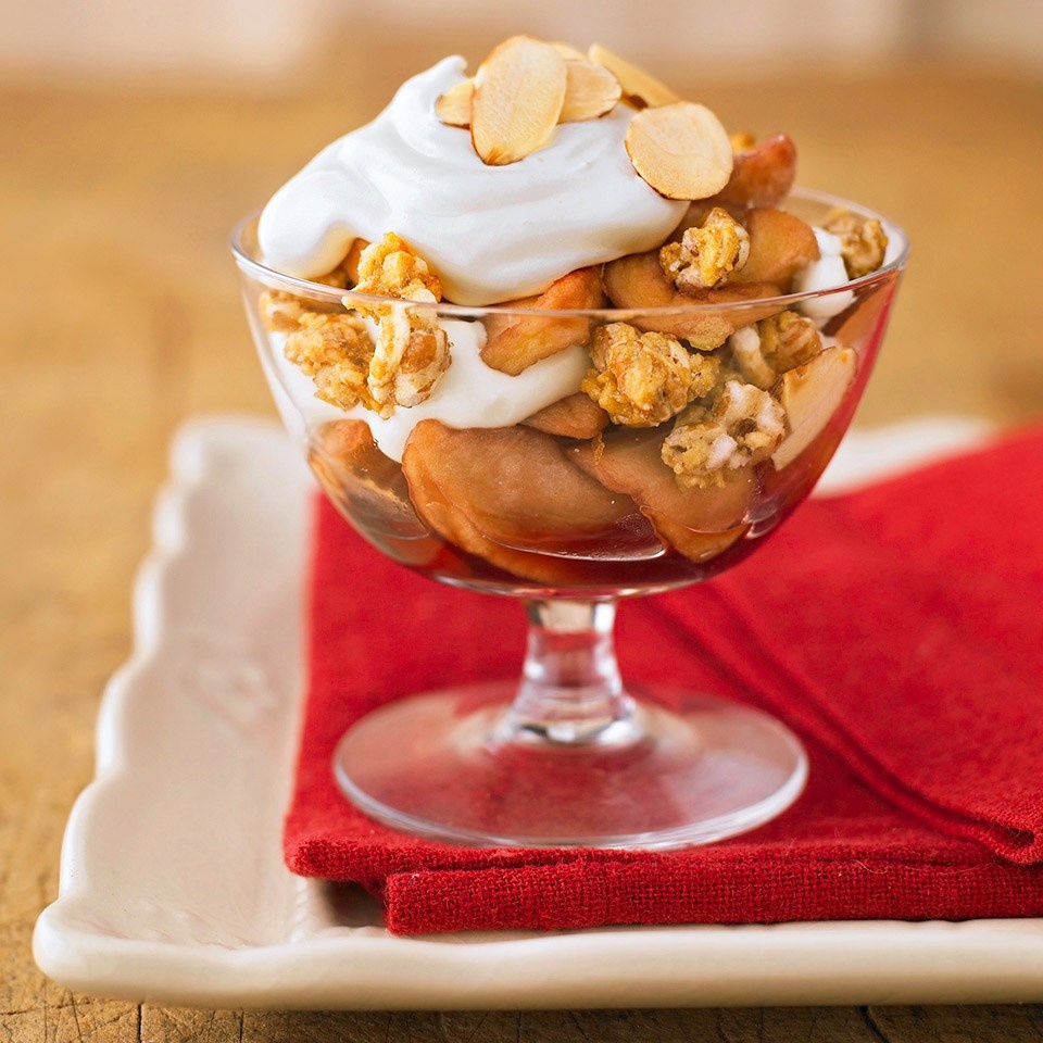 - Смешайте йогурт с ванильным или миндальным экстрактом и залейте десерт готовой смесью.