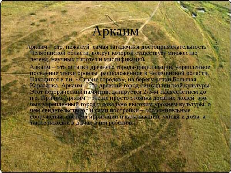 Аркаим и Геперборея...Правду так и правду...А если правду, то значит начинать с нуля... Мы думаем о том,о чём думаем и иначе думать не можем,мы верив в то,во что верим в настоящее время и в настоящий момент от начала времён,до того момента каким мы можем его представить.Я включаю за ранее приготовленную мелодию которая записана как в своём нормальном воспроизведении так и в обратном.Для того,что бы даже в звуком смысле быть шаг назад шаг вперёд и на этом участке начинаю своеобразный смысловой сёрфинг,а точнее смысловое вращение.Моё привычное восприятие звуковых файлов странно реагирует на такое воздействие,моё тело привычное к разнообразным источникам информации ведёт себя странно,но таким образом я выбираю пространство.Я топчусь на месте и могу взглянуть на всё,что есть вокруг с одной точки зрения,но объективной.И так.Откуда я мог узнать об Аркаиме и о том что это самый древний город? От своих друзей.Моё чувство патриотизма было на высоте.Мне нравилось то,что мы самые старые