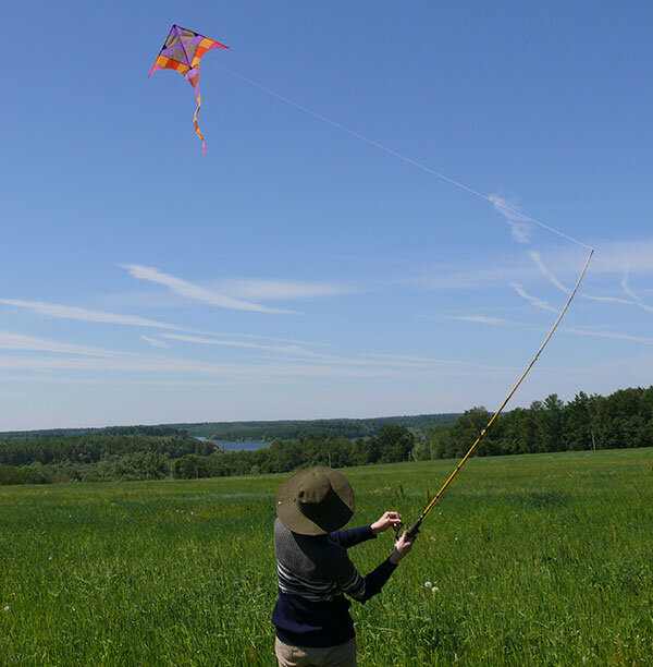 Воздушный змей на спиннинге - отличное развлечение для всей семьи на даче.