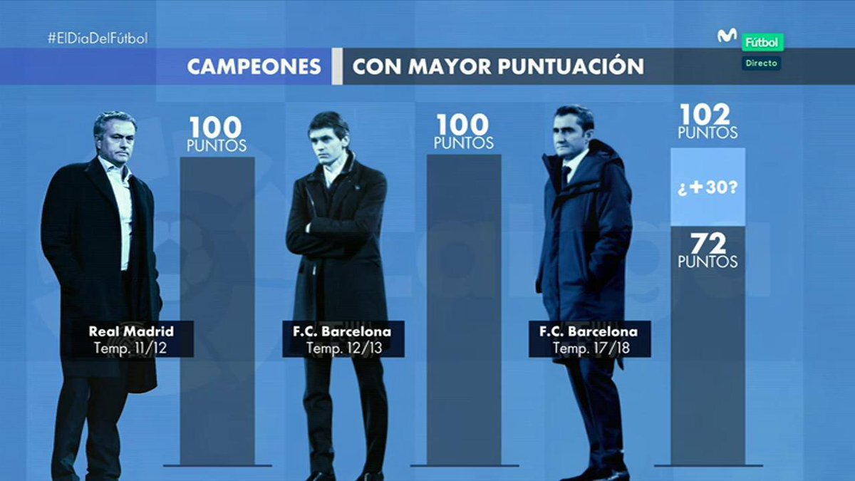 В первый же свой сезон Эрнесто Вальверде замахнулся на серьезное достижение. "Реал Мадрид" Жозе Моуринью в сезоне 2011/2012 набрал 100 очков по итогам сезона. В следующий же сезон, "Барселона" Тито Вилановы повторила это достижение. "Барселона" Эрнесто Вальверде сезона 2017/2018, на данный момент, имеет в своем активе 72 очка. Если команды выиграет все оставшиеся 10 матчей, то наберет 102 очка, побив рекорды Моуринью и Вилановы.