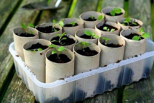 Готовые торфяные горшочки для рассады не дешевы и не слишком надежны: при обильном поливе могут раскиснуть. К счастью, есть много источников пополнения домашних запасов емкостей для рассады. Самый простой — одноразовые пластиковые стаканчики. Они дешевы и доступны, только не забудьте сделать дренажное отверстие в дне каждого стаканчика. Я это делаю разогретым на огне шилом. Поскольку в моей семье едят йогурты и сметану, пластиковые емкости от этих продуктов также идут в дело. Горшочки для рассады дыни и арбуза делаю из пакетов из-под молока и соков. Они вместительные и высокие, что немаловажно для культур с длинными корнями. Подойдут и пластиковые бутылки, которые надо обрезать, а потом высверлить в донце дренажные отверстия. Самодельные горшочки можно сделать и из плотной бумаги, особенно глянцевых журналов. Для этого вырываю из журнала средние страницы (2 листа), складываю их до получения нужной высоты будущего горшочка. Накручиваю полоску бумаги на бутылку нужного ди