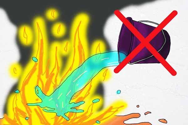 Почему нельзя бензин тушить водой. Все знают, что пожар всегда тушат водой. Однако если загорится бензин, то для его тушения вода не подойдет. Что такое бензин - это легко загорающаяся жидкость, которую используют для заправки автомобилей. В отличие от многих горючих веществ, загоревшийся бензин ни в коем случае нельзя пытаться потушить, залив его водой: таким действием вы рискуете лишь увеличить и усилить пожар. Для чего загоревшиеся предметы заливают водой? Дело в том, что горение чего либо — это соединение горючего вещества с кислородом, поэтому главная цель при тушении пожаров это ограничить приток кислорода (воздуха) к горящему предмету. Тушение водой это и есть перекрытие доступа кислорода к горящему предмету, так как вода, смачивая, обволакивает его (а кроме того, вода уменьшает его температуру, остужает). С бензином же так не получится, потому что он не смешивается с водой, а просто всплывает на ее поверхность (как растительное масло), продолжая горе