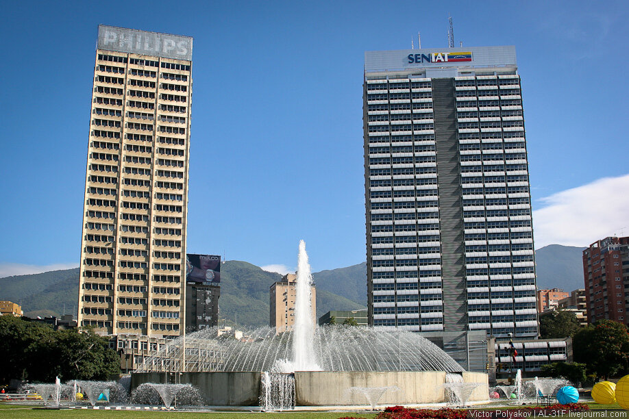 Сейчас движемся по проспекту Франсиско Миранды. Это местный "сити". Здесь всё так, как показывают в классических фильмах про деловые центры американских городов. Вся улица застроена офисными небоскребами, принадлежащими различным компаниям.