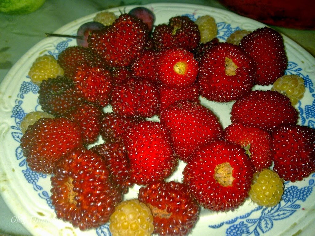 Это не большое растение с красивыми розовыми цветками похожее внешне на малину, как кустарник. Мороза растение совсем не боится, а наоборот очень страдает от жары и засухи. Ягоды темно красные, в спелом виде почти черные, по форме напоминают ежевику, только мельче. На вкус чуть кисловатые, очень приятные с запахом, напоминающий запах ананаса. Зачем же дело стало: бери и размножай. Вот именно в этом проблема, что с течением времени был потерян плодовитый клон. Но если у кого то есть плодовитые ростки, то их легко размножить простым делением куста. Помните при размножении княженики семенами сеять ее нужно только осенью, иначе семена пролежать в земле весь год. Княженика требует плодородной, в