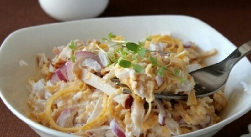 Представляем вашему вниманию рецепт вкуснейшего салата, который понравится всем без исключения. Он получается очень нежный, сытный и невероятно аппетитный. Мои гости всегда от него в восторге. Можно его приготовить как на праздничный стол, так и на обыденный. Его невозможно не любить. Сочетание ингредиентов приятно порадует каждого. Сохраняйте рецептик, готовьте и наслаждайтесь. Нужные ингредиенты Начинаем процесс Вам еще может понравиться вкуснейший салатик для любителей морской капусты, рецепт которого вы найдете на нашем сайте «Идеи рецептов». Приятного аппетита!