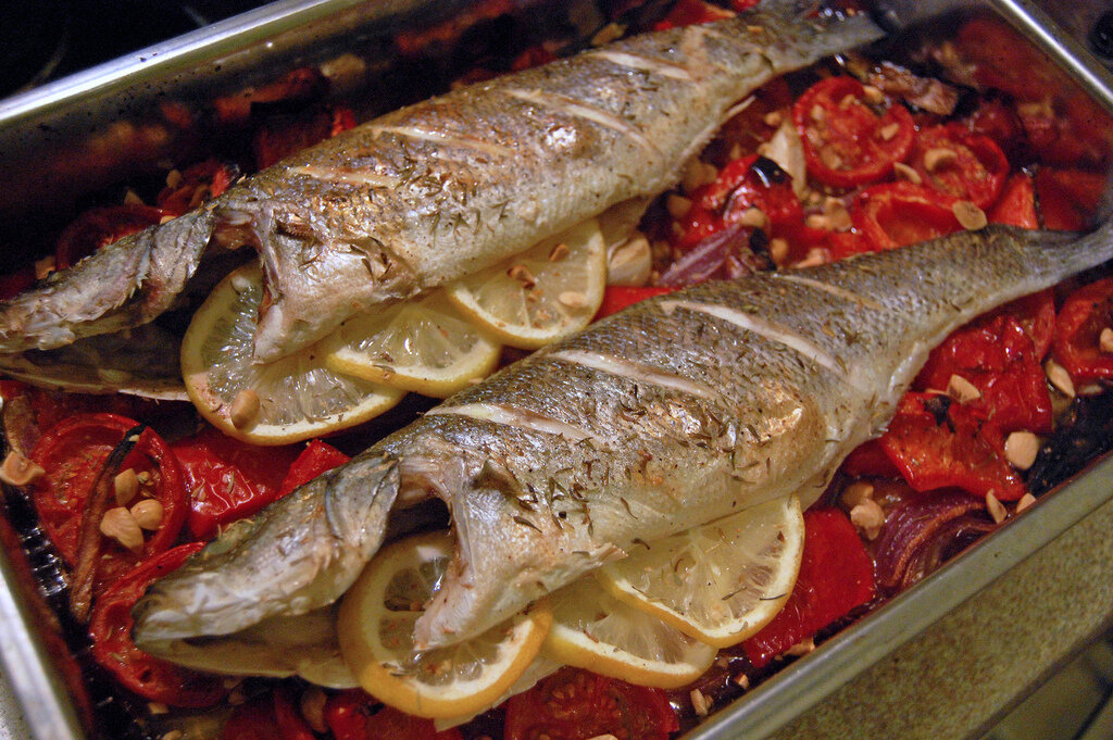 Для приготовления этого рыбного блюда рекомендуется использовать не морскую, а озерную рыбу, которую нужно будет сначала выпотрошить, а затем нафаршировать ореховой начинкой. Итак, для приготовления рыбы с помидорами и орехами понадобится набор из таких пищевых продуктов: - орехи грецкие (120 г);