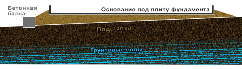 Заливать монолитную плиту в качестве фундамента я решил по следующим соображениям: 1. Высокий уровень грунтовых вод, с учетом анализа поведения различных фундаментов в округе, привели меня к мысли, что плита в нашем районе будет самое верное решение. Хотя мой эксперимент будет первый в нашем СНТ. 2. После того, как мой первый неудачный фундамент (сделанный наемными строителями) рассыпался, и я решил все делать самостоятельно, тоя уже залил две небольшие плиты под дровяной сарай и летний душ. Наблюдение за поведением этих плит окончательно убедили меня в преимуществе плиты перед летной и сваями (именно в нашей местности). 3. В будущем доме я планировал тяжелый дымоход и не хотел разделять фундаменты. В качестве хорошей ложки дегтя выступало то, что участок имеет хороший наклон (почти 180 см перепада высот на протяжении 35 метров уклона). Но это неудобство я решил сделать преимуществом. Плита должна стать наподобие искусственного сухого острова, окруженного продуманными водоотводами. Бет