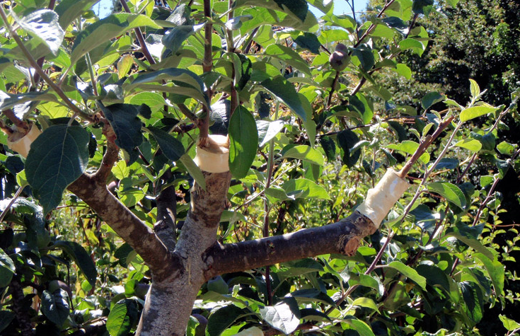 Черенки для весенней прививки заготавливают зимой или за 1-2 недели до прививки. Важно, чтобы почки находились в состоянии покоя. Хранят черенки в снегу или холодильнике. Выбирают здоровые, крепкие, однолетние побеги с южной стороны дерева. У побегов в это время нет листьев, следовательно, нет и черешков, за которые обычно держат щиток при прививке. Это главное неудобство весенней прививки (щиток часто падает на землю и приходится срезать новый).