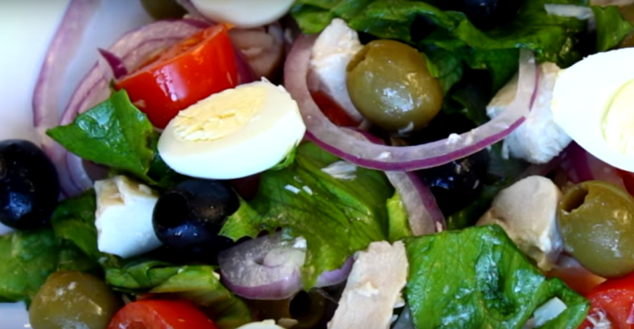 Представляем вам рецепт вкусного и очень простого салата. Получается салат яркий, красочный и очень аппетитный. Его приготовление не занимает много времени. Салат можно готовить и на семейный ужин, и на праздничном столе он будет смотреться уместно. Необходимые продукты Начинаем приготовление Приятного аппетита!