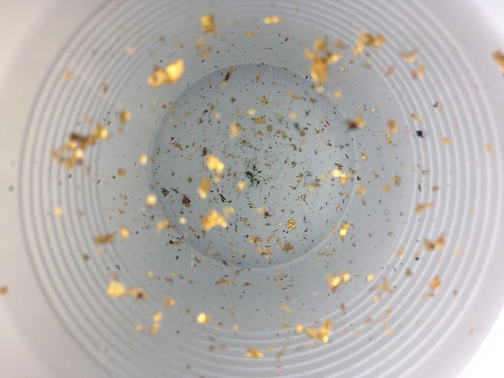 Затем, подождите, пока золотая фольга осядет на дно.