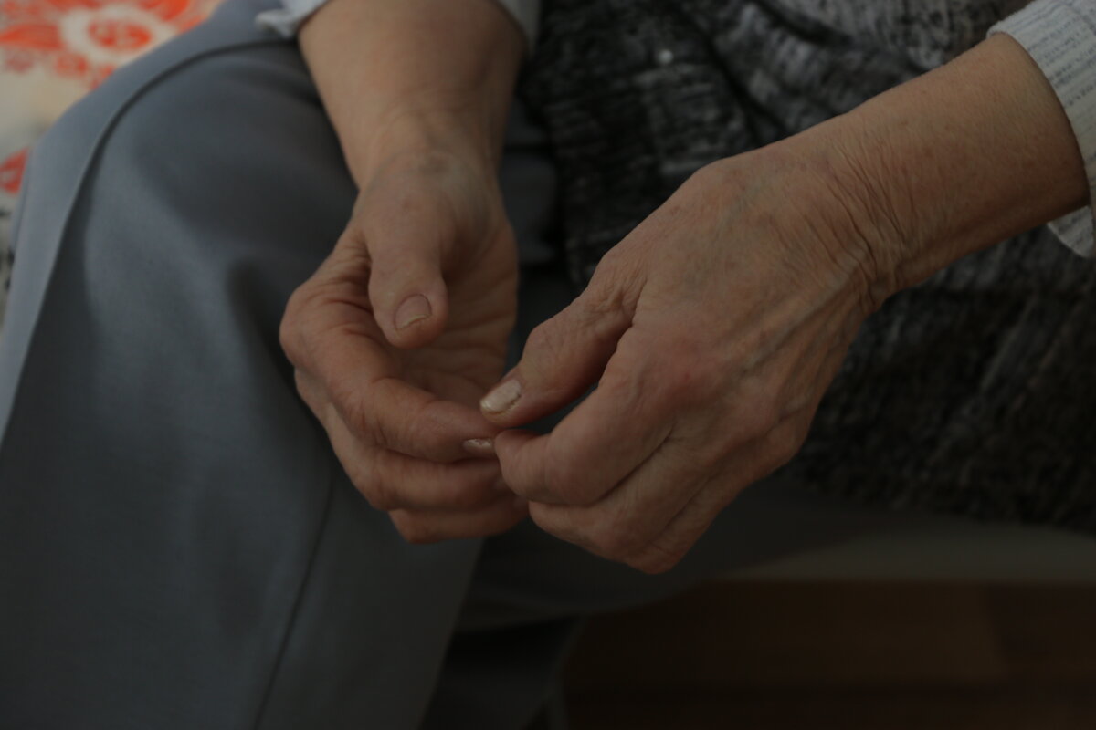 Как бы закрепить свою решимость продолжает: «Пока справляюсь со всем сама. Каждый день на скандинавской ходьбе минут 15-20. Я когда палки беру в руки, меня несет! Но тут важна техника и дыхание: два шага вдох, четыре шага выдох. Сейчас не всегда получается, но как получается. Я уменьшила расстояние ходьбы. Я и сюда палки принесла. Вот сегодня только не пошла, вас ждала. Сейчас покажу их, - достаёт складные палочки из уголка, где хранится верхняя одежда, - В подарок мне привезли. Я ныла, да ныла. Из Норвегии, - придавая значимость, сообщает Эльвира Павловна. Сейчас соберу их и сделаю по-нормальному, они ведь регулируются, - Эльвира Павловна палочки крутит и вертит, но ничего не получается, - Нет. Забыла, как делается... Но я соображу. Мхм. Странно...». Эльвира Павловна задумывается, пока настраивает палки для ходьбы.