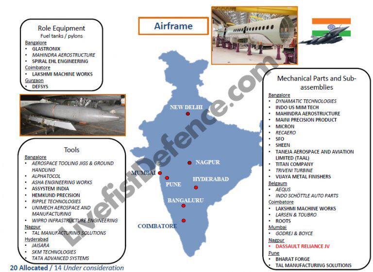 Раз пошла индийская пьянка, то упомянем и детали нового контракта на закупку 36 истребителей Rafale - его стоимость оценивается в 7,87 млрд евро, из которых 4 млрд евро должны вернуться в Индию в рамках офсетных программ. Срок исполнения этих программ - 2023 год. В них не включается программа "сафранизации" двигателя Kaveri стоимостью 1 млрд евро. К реализации офсетов будут привлечены 72 индийские компании. Ниже мы приведем слайды презентации, которые подробно показывают промышленное участие в программе Rafale индийских предприятий